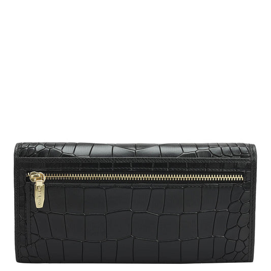 Black Croco Leather Ladies Wallet & Keychain Gift Set