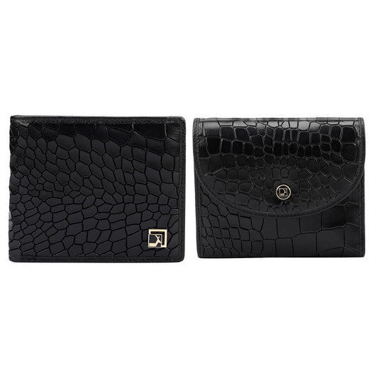 Black Croco Leather Mens & Ladies Wallet Gift Set