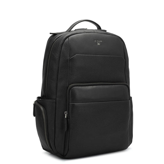 Wax Plain Leather Backpack - Black