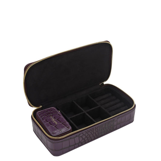 Croco Franzy Leather Jewellery Case - Plumberry