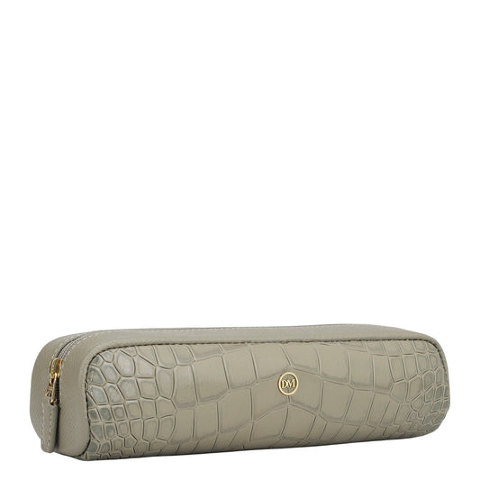 Croco Franzy Leather Multi Pouch - Stone Grey
