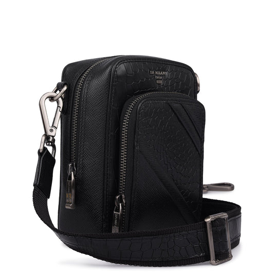 Croco Franzy Leather Men Sling - Black