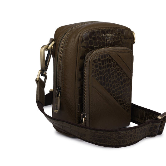Croco Franzy Leather Men Sling - Military Green