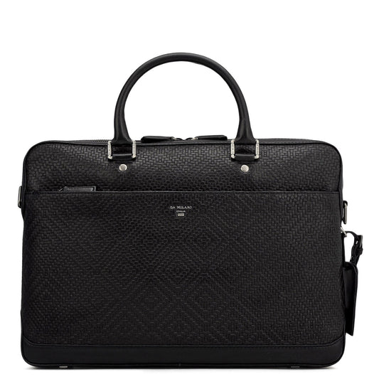 Mat Emboss Plain Leather Laptop Sleeve - Black