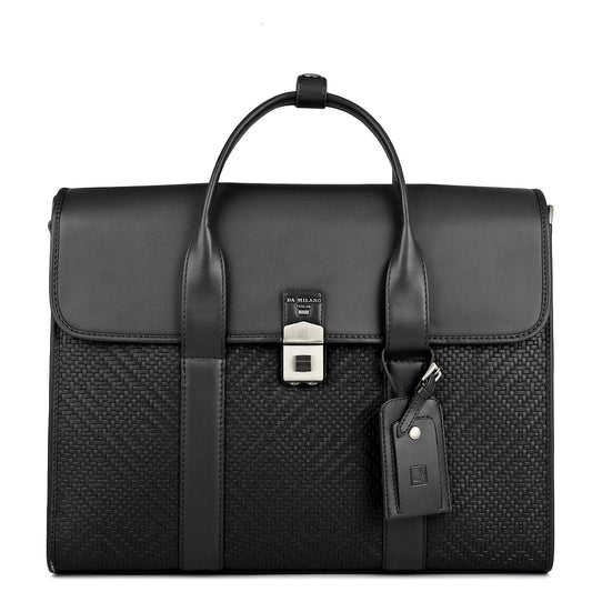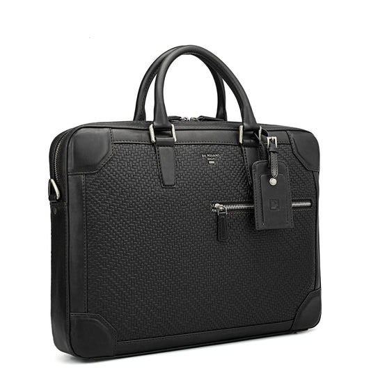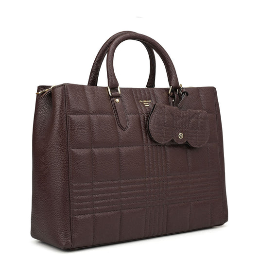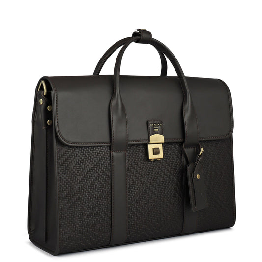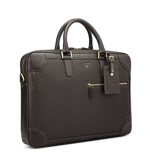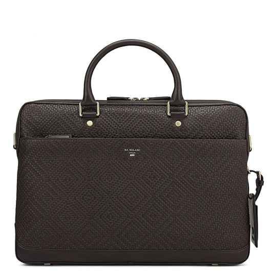 Mat Emboss Plain Leather Laptop Bag - Brown