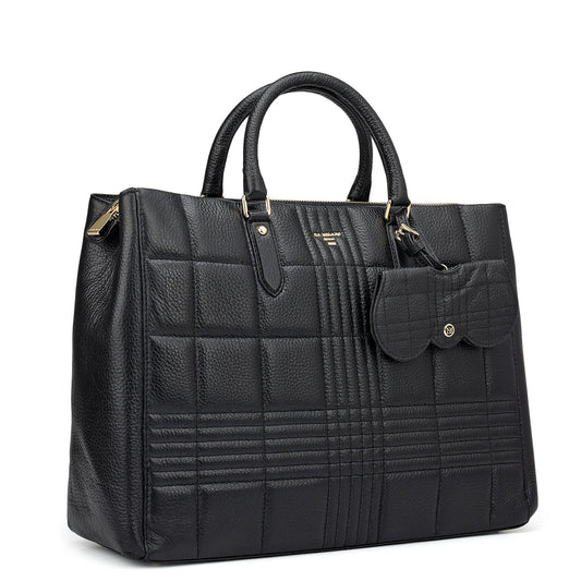 Large Wax Stripe Leather Book Tote - Bottle Green