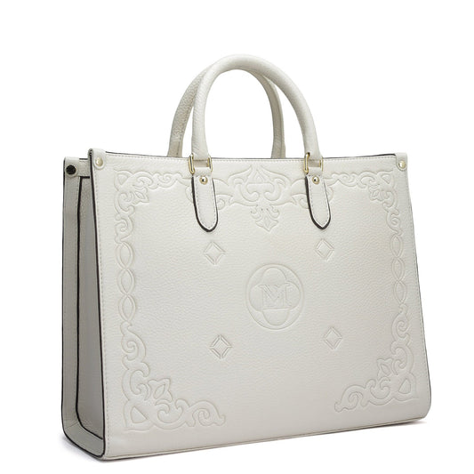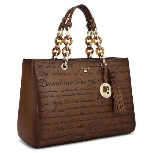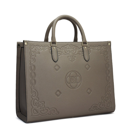 Medium PC Mat Emboss Leather Trolley - Khaki & Brown