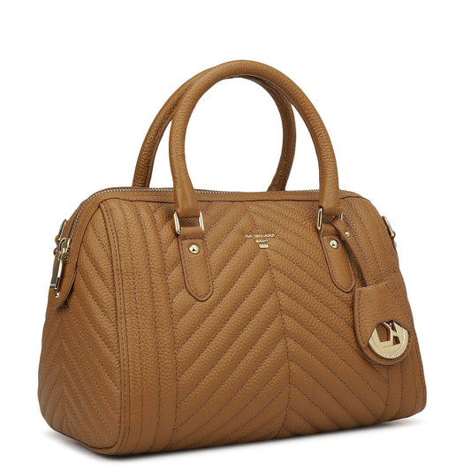 Medium Quilting Plain Leather Shoulder Bag - Tan