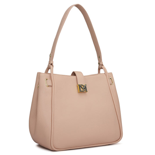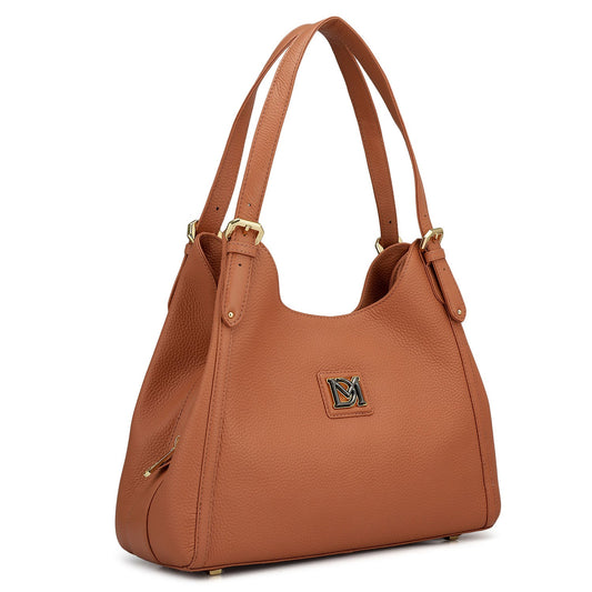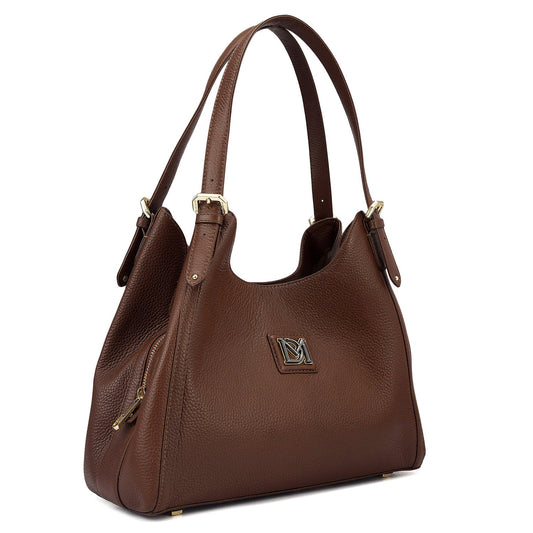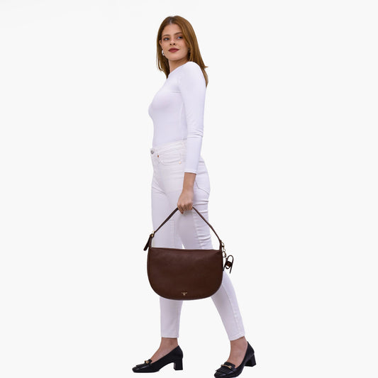 Medium Wax Leather Hobo Bag - Greyish Taupe