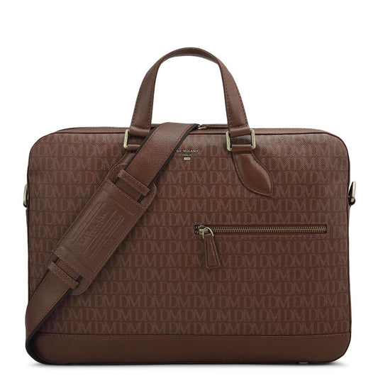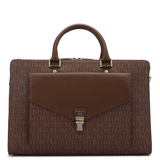 Monogram Franzy Leather Laptop Bag - Chocolate