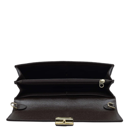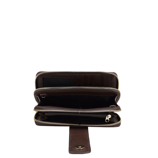 Monogram Leather Ladies Sling Wallet - Chocolate