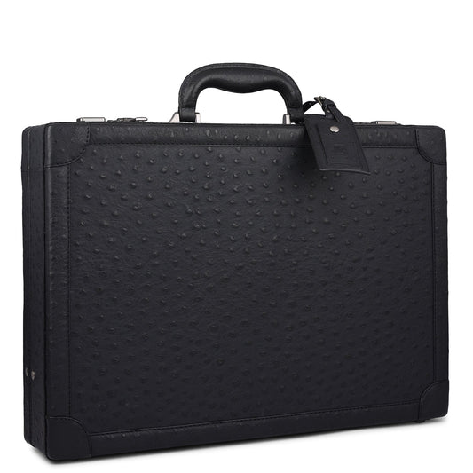 Ostrich Leather Brief Case - Black