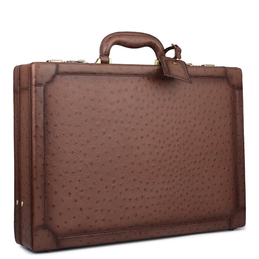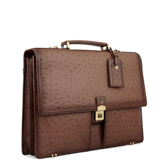 Ostrich Leather Brief Case - Brown