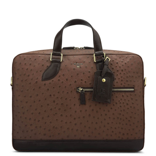 Ostrich Leather Laptop Bag - Brown