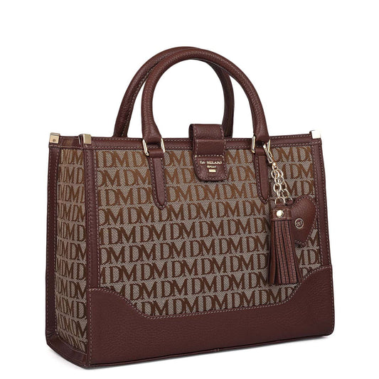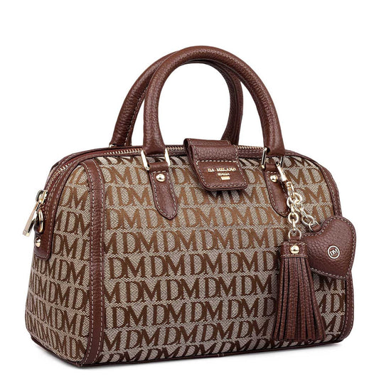 Small Canvas Wax Leather Satchel - Beige & Espresso