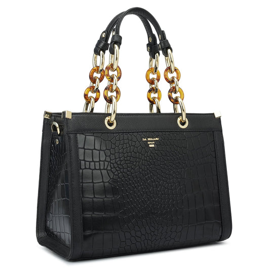Small Croco Franzy Leather Satchel - Grapevine & Frost