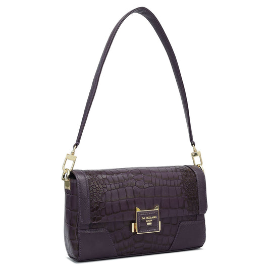 Small Croco Franzy Leather Satchel - Plumberry & Frost