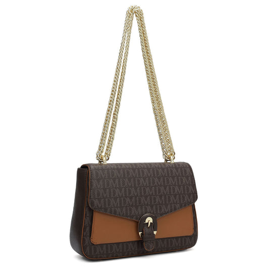 Small Monogram Plain Leather Shoulder Bag - Chocolate
