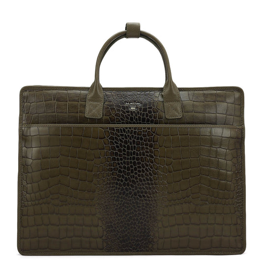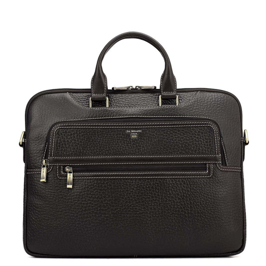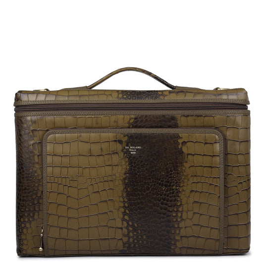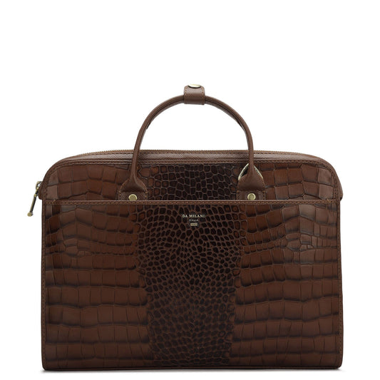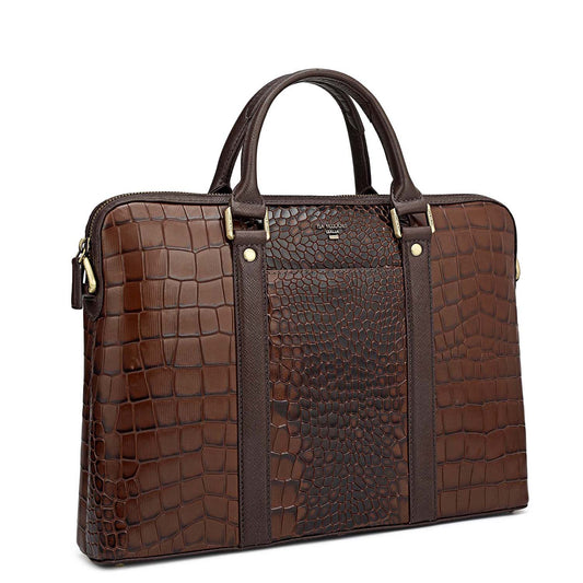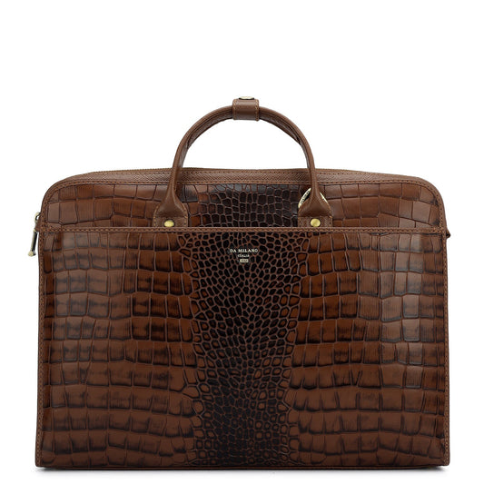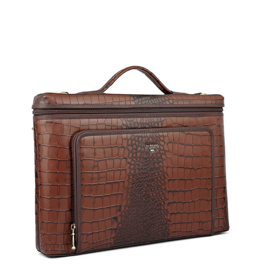 Elephant Pattern Leather Laptop Sleeve - Cognac