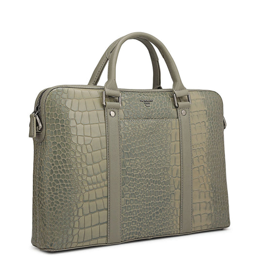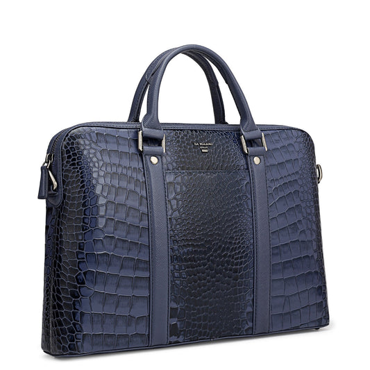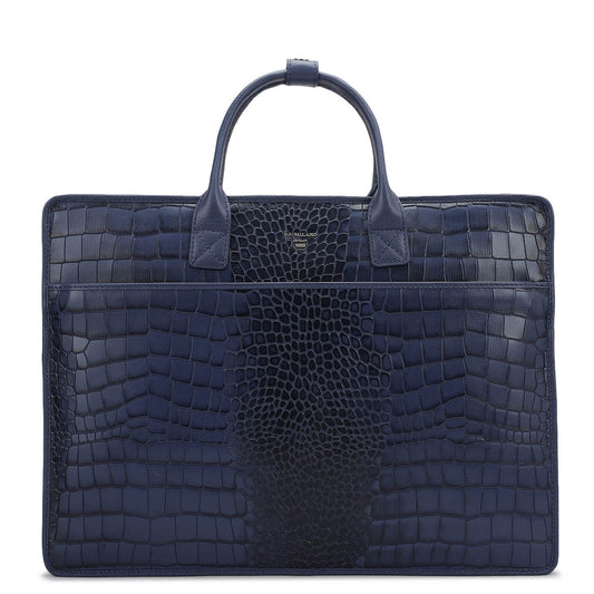 Elephant Pattern Leather Laptop Sleeve - Navy
