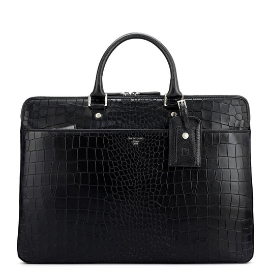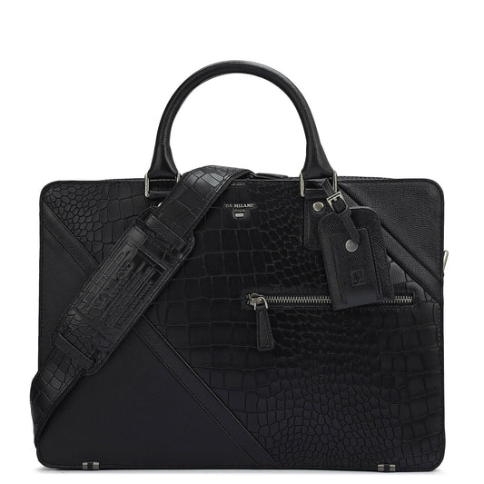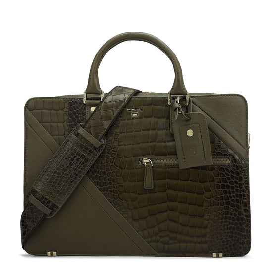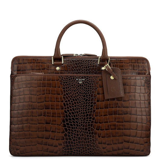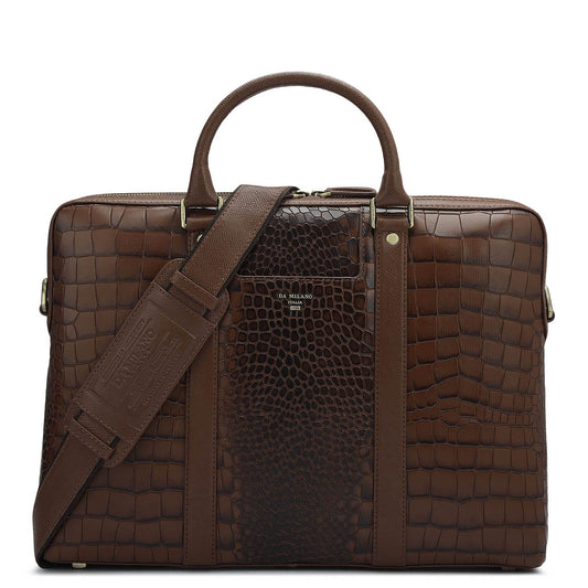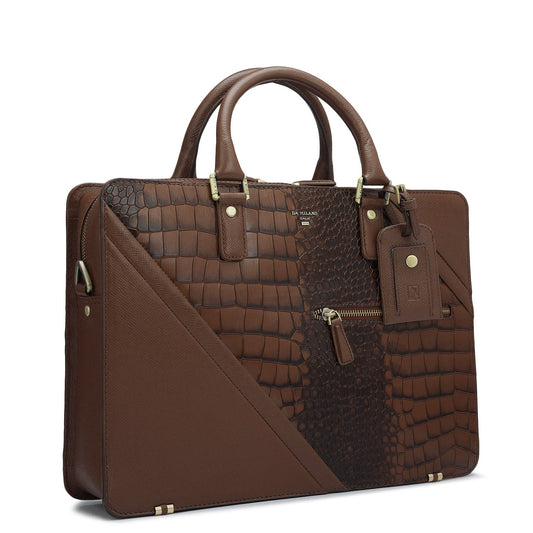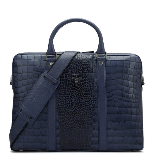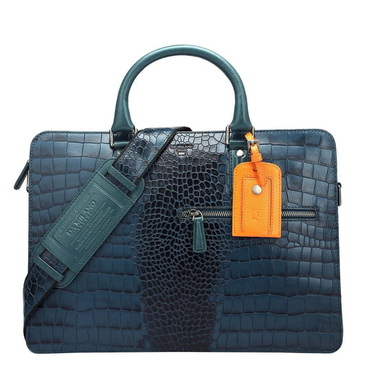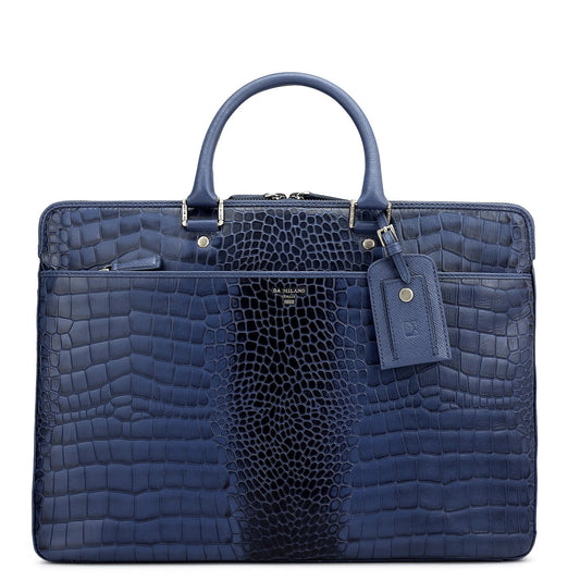 Croco Embossed Leather Laptop Bag – Ocean Blue