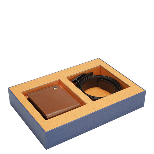 Cognac Signato Leather Mens Wallet & Belt Gift Set