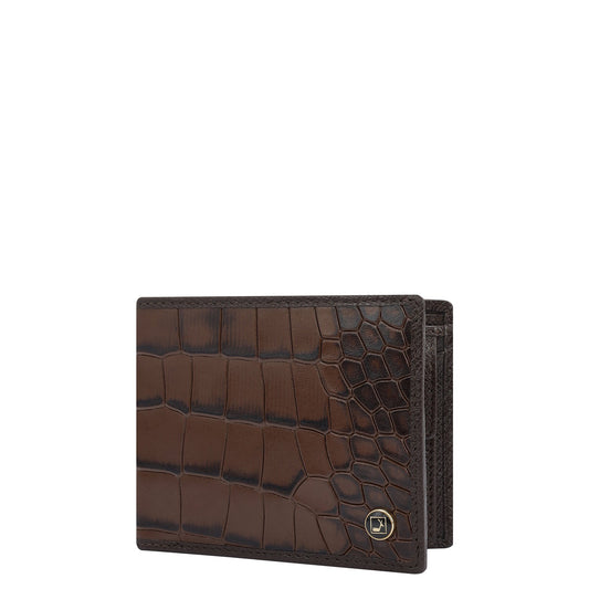 Croco Leather Mens Wallet - Brown