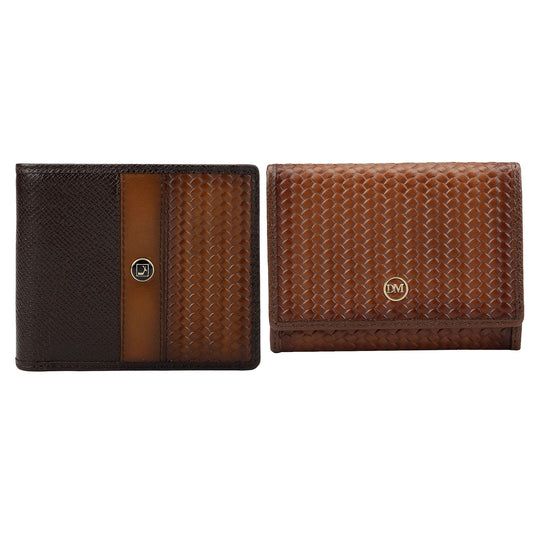 Chocolate Cognac Franzy Mat-Emboss Leather Mens Wallet & Card Case Gift Set