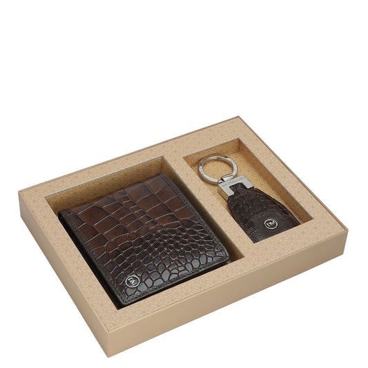 Brown Croco Franzy Mens Wallet & Keychain Leather Gift Set