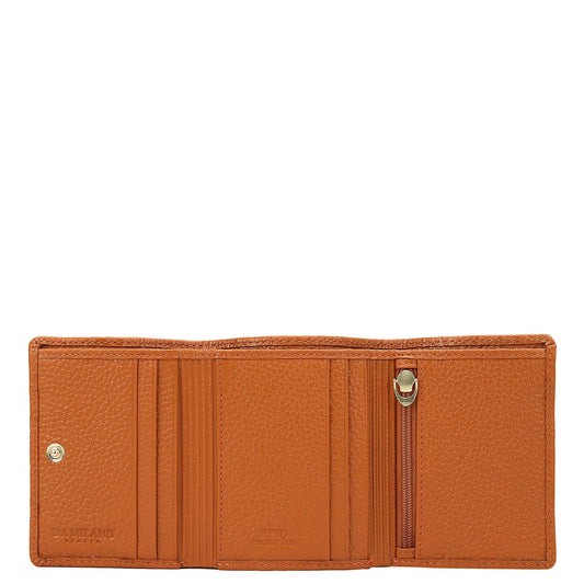 Orange Trifold Leather Mens Wallet