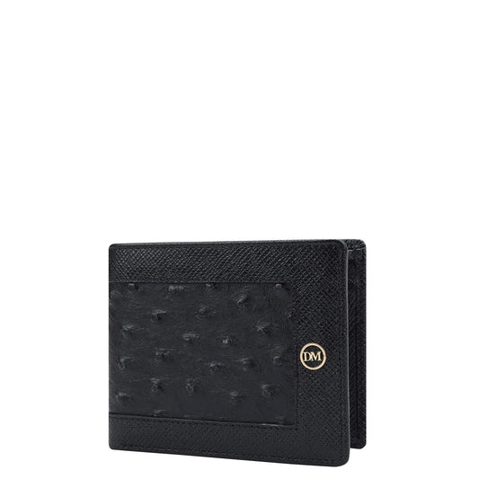 Ostrich Franzy Leather Mens Wallet - Black