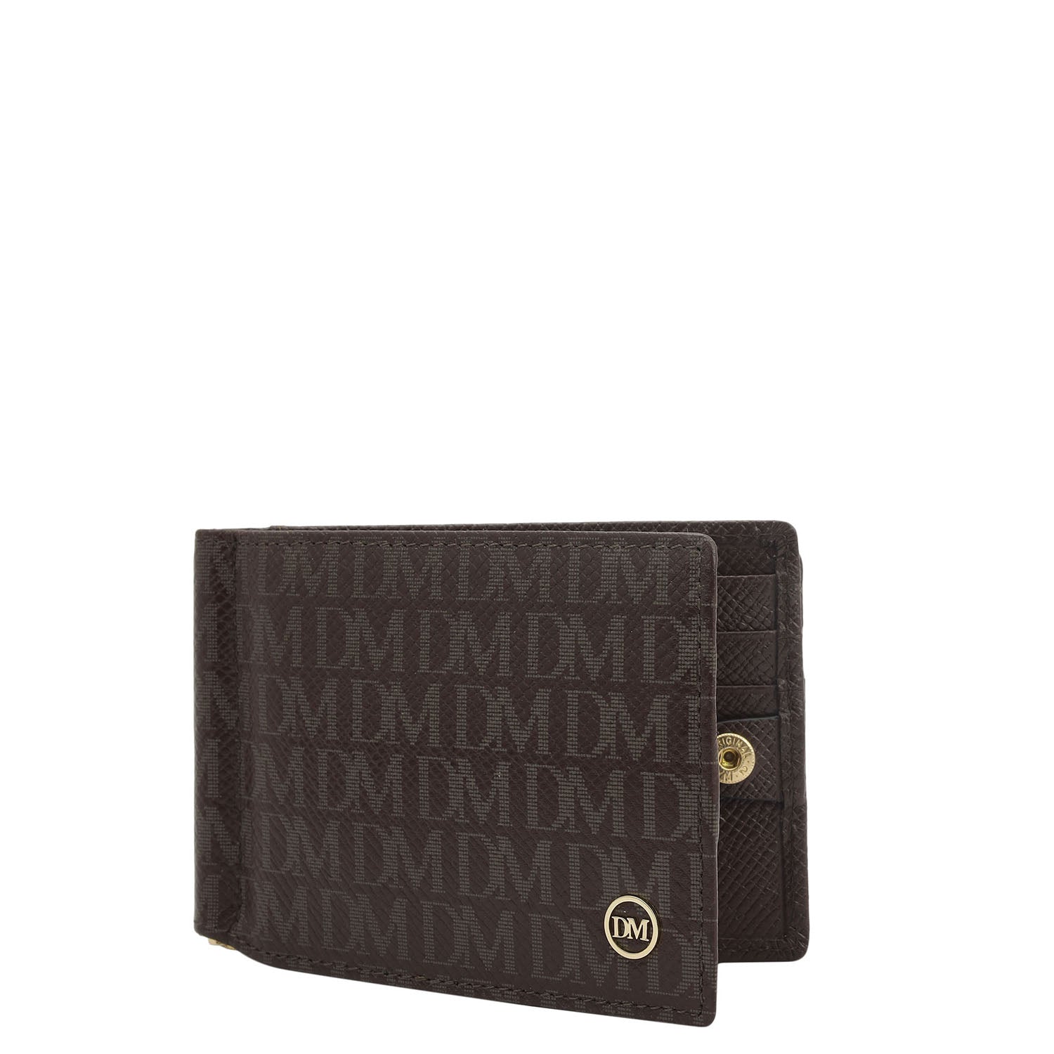 13 Slots Monogram Leather Money Clip-Chocolate