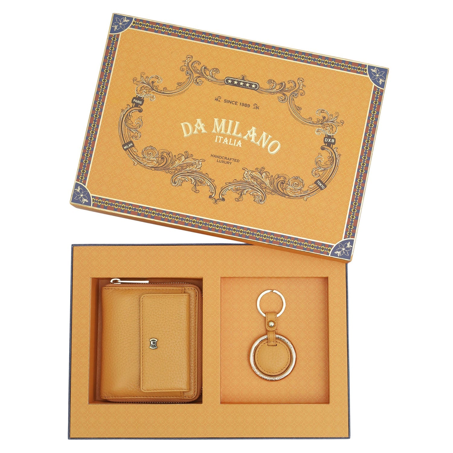 This Ladies wallet & Key Chain set is your perfect guide to gifting. This gift box consists of Ladies wallet and Key Chain. Packed in a beautiful box, it can be gifted as is.