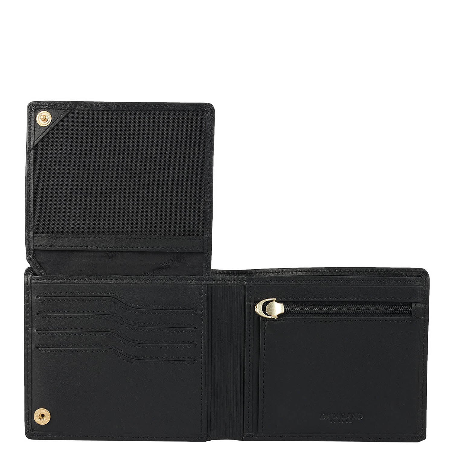 Crafted from textured leather, Da Milano men's bifold wallet offers a compact yet stylish design. Featuring easy-to-organize compartments, card slots, and pockets, it combines practicality with elegance. Subtle branding on the front enhances its refined appearance.