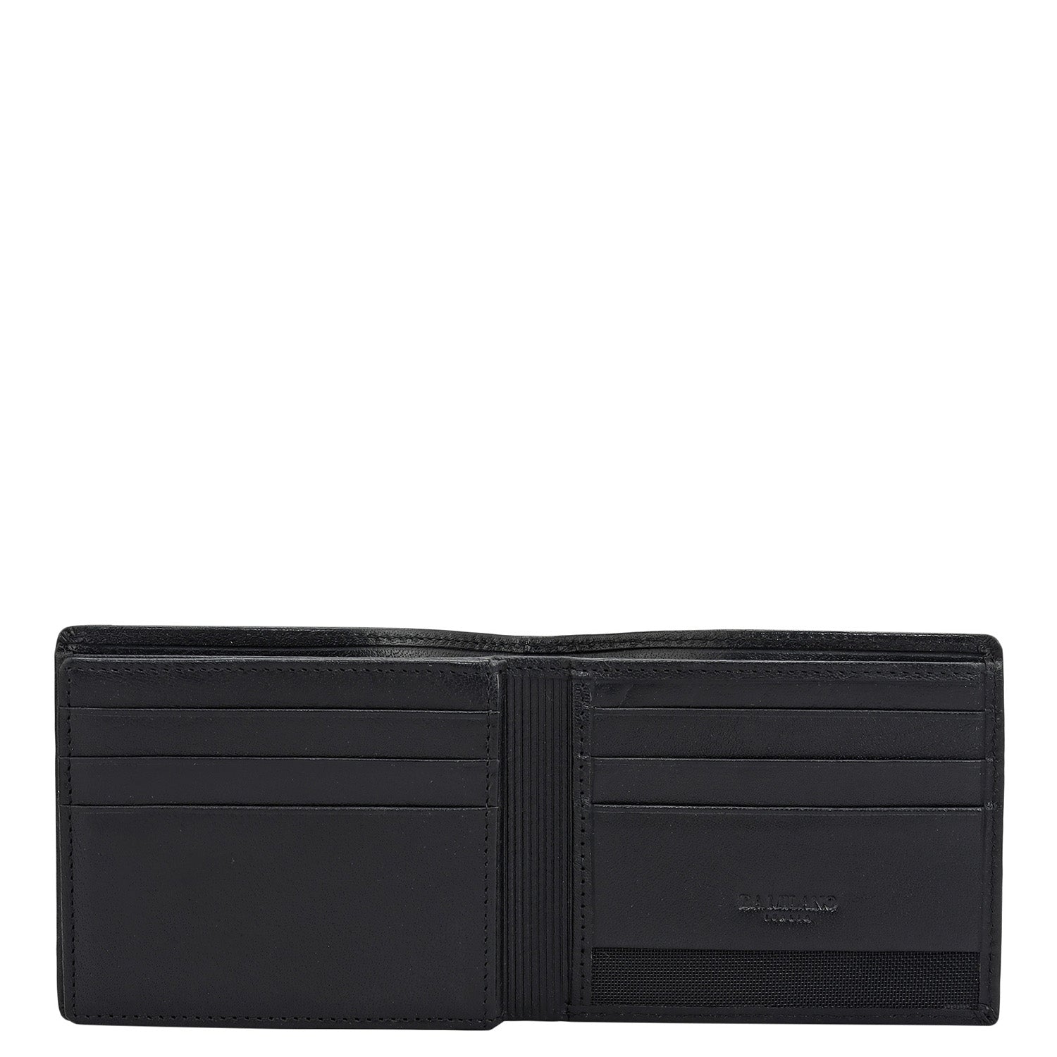 Crafted from textured leather, Da Milano men's bifold wallet offers a compact yet stylish design. Featuring easy-to-organize compartments, card slots, and pockets, it combines practicality with elegance. Subtle branding on the front enhances its refined appearance.