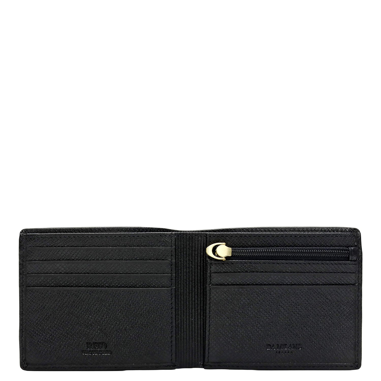 Crafted from textured leather, Da Milano men's bifold wallet offers a compact yet stylish design. Featuring easy-to-organize compartments, card slots, and pockets, it combines practicality with elegance. Subtle branding on the front enhances its refined appearance.