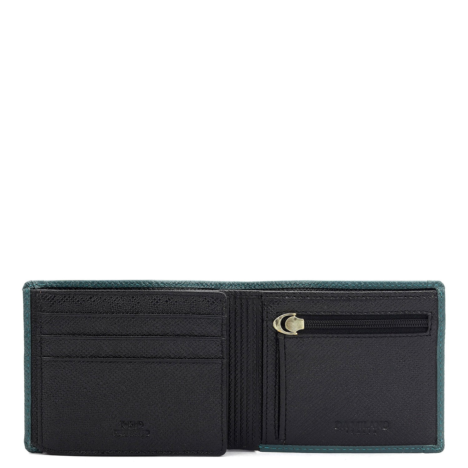 Crafted from textured leather, Da Milano men's bifold wallet offers a compact yet stylish design. Featuring easy-to-organize compartments, card slots, and pockets, it combines practicality with elegance. Subtle branding on the front enhances its refined appearance.