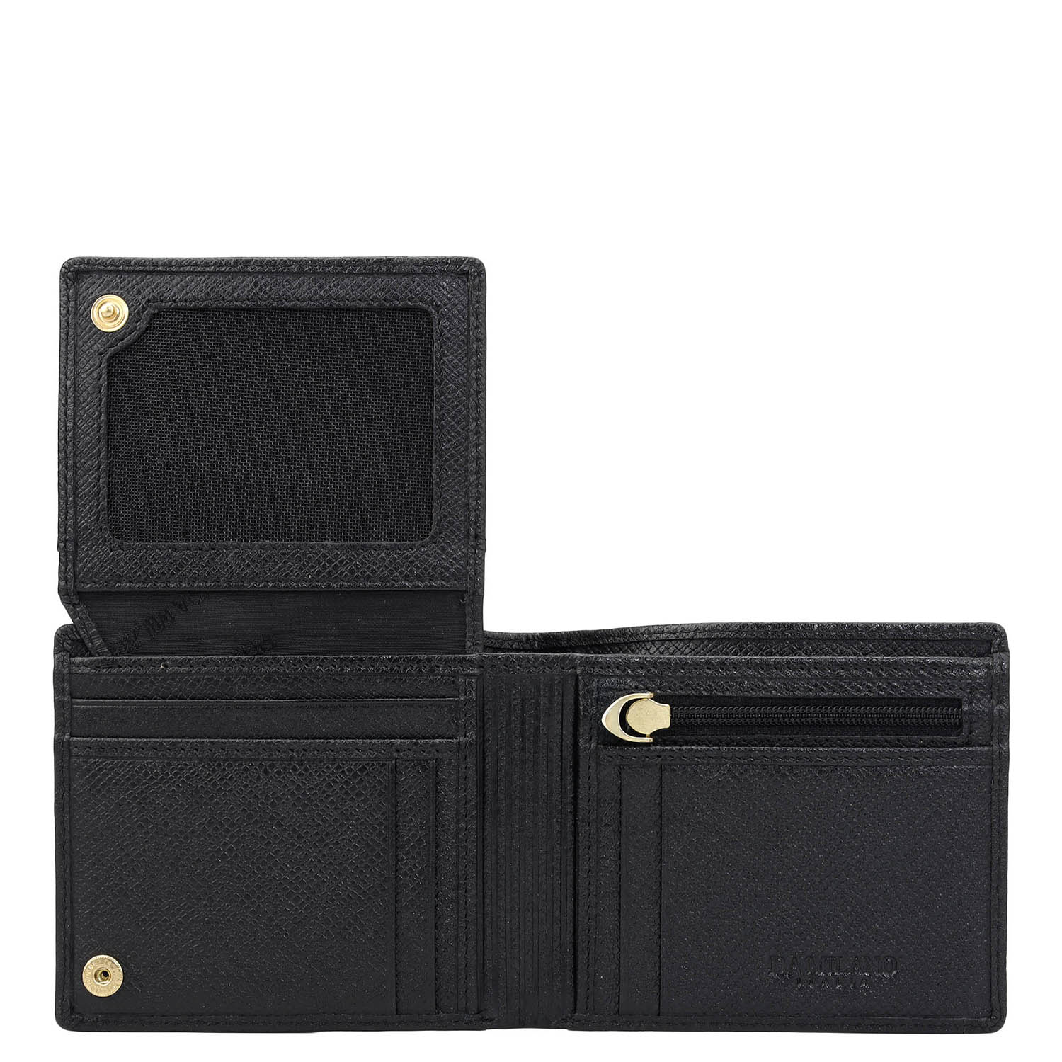 Crafted from textured leather, Da Milano men's bifold wallet offers a compact yet stylish design. Featuring easy-to-organize compartments, card slots, and pockets, it combines practicality with elegance. Subtle branding on the front enhances its refined appearance.
