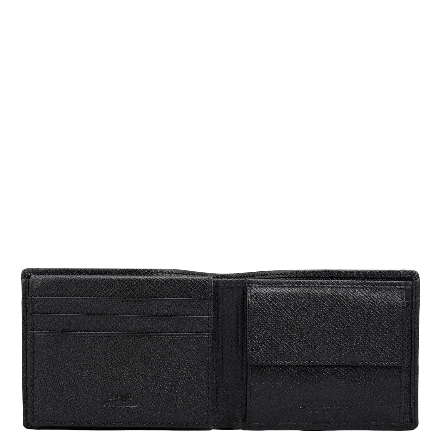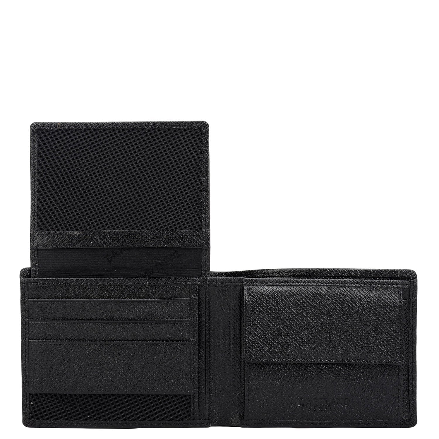 Crafted from textured leather, Da Milano men's bifold wallet offers a compact yet stylish design. Featuring easy-to-organize compartments, card slots, and pockets, it combines practicality with elegance. Subtle branding on the front enhances its refined appearance.
