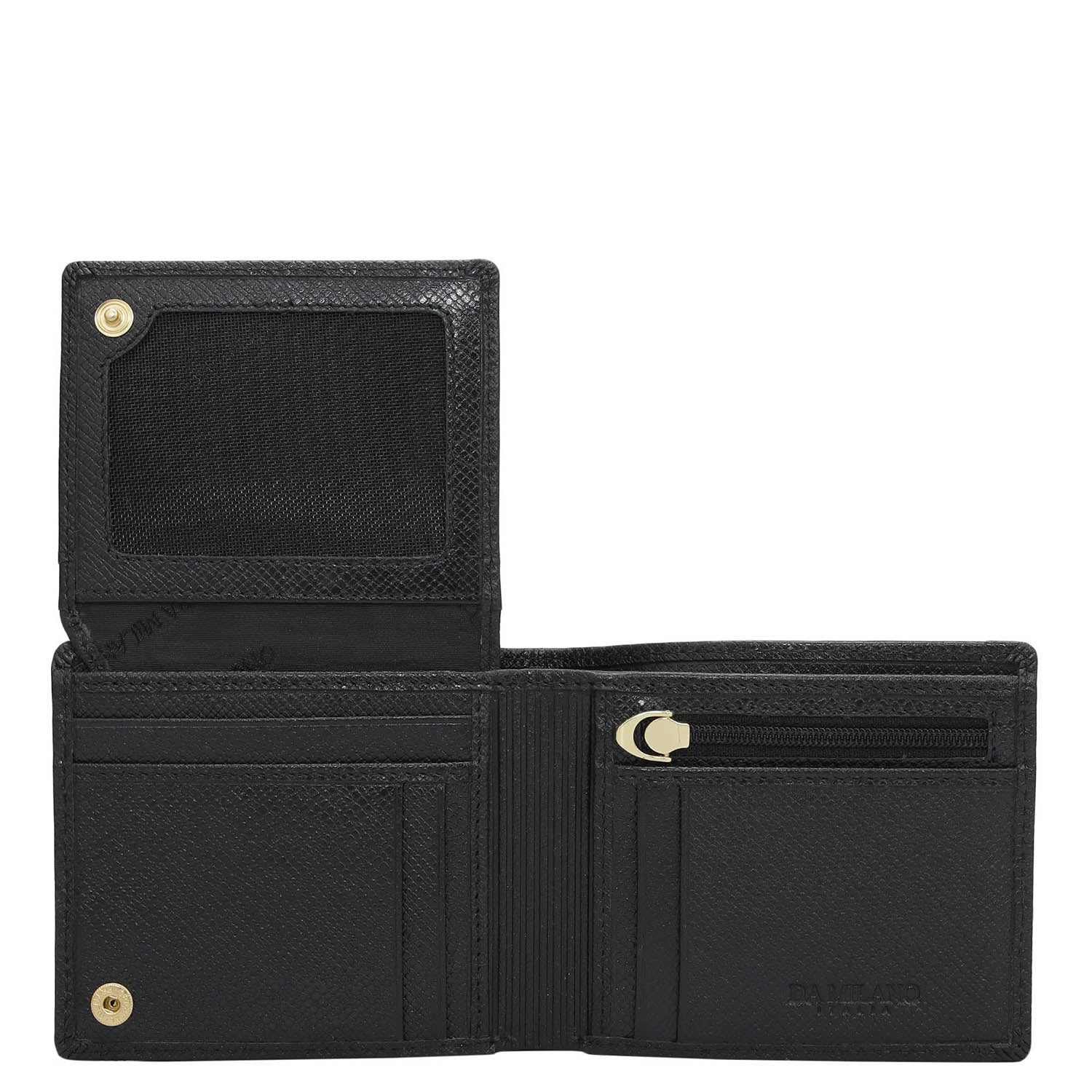 Crafted from textured leather, Da Milano men's bifold wallet offers a compact yet stylish design. Featuring easy-to-organize compartments, card slots, and pockets, it combines practicality with elegance. Subtle branding on the front enhances its refined appearance.