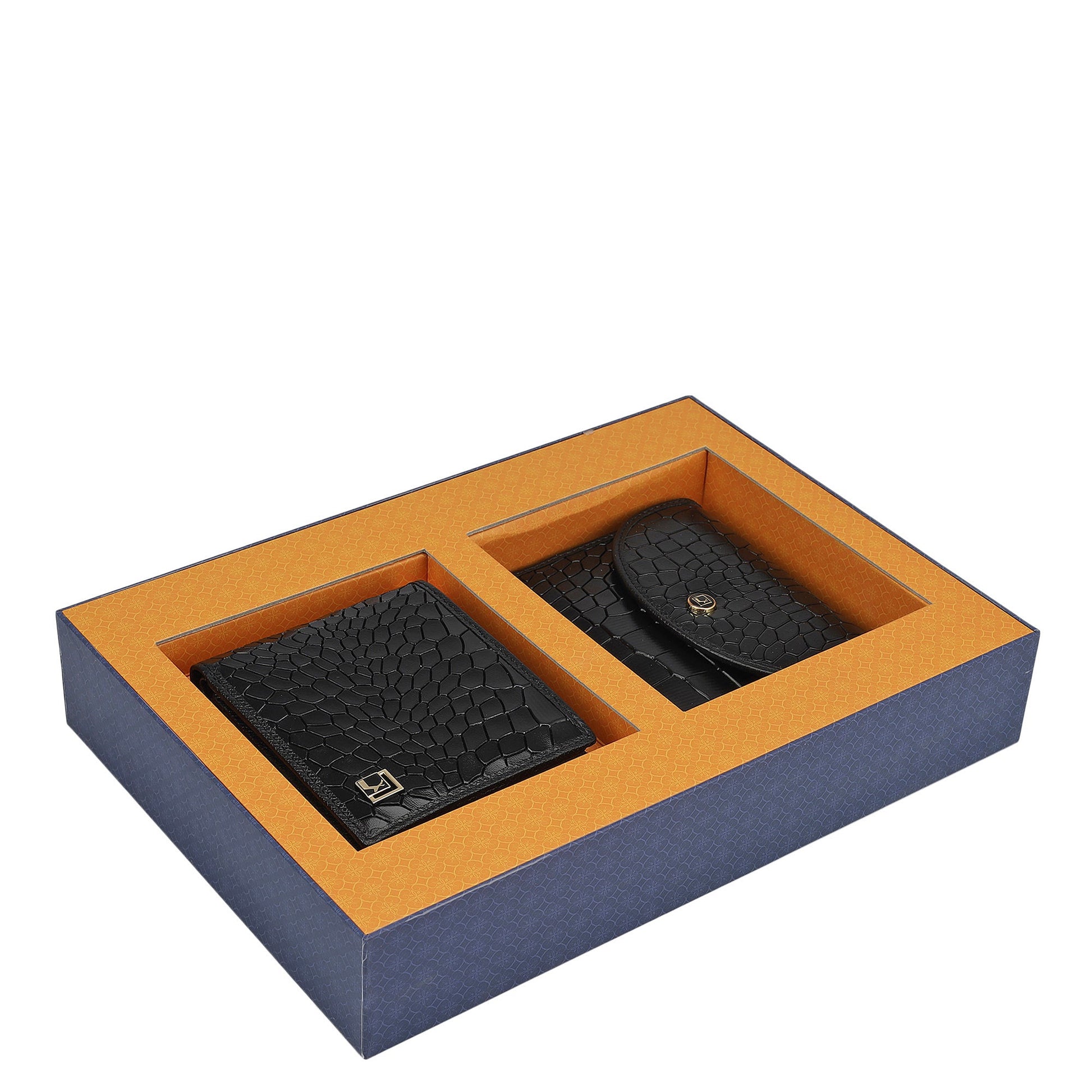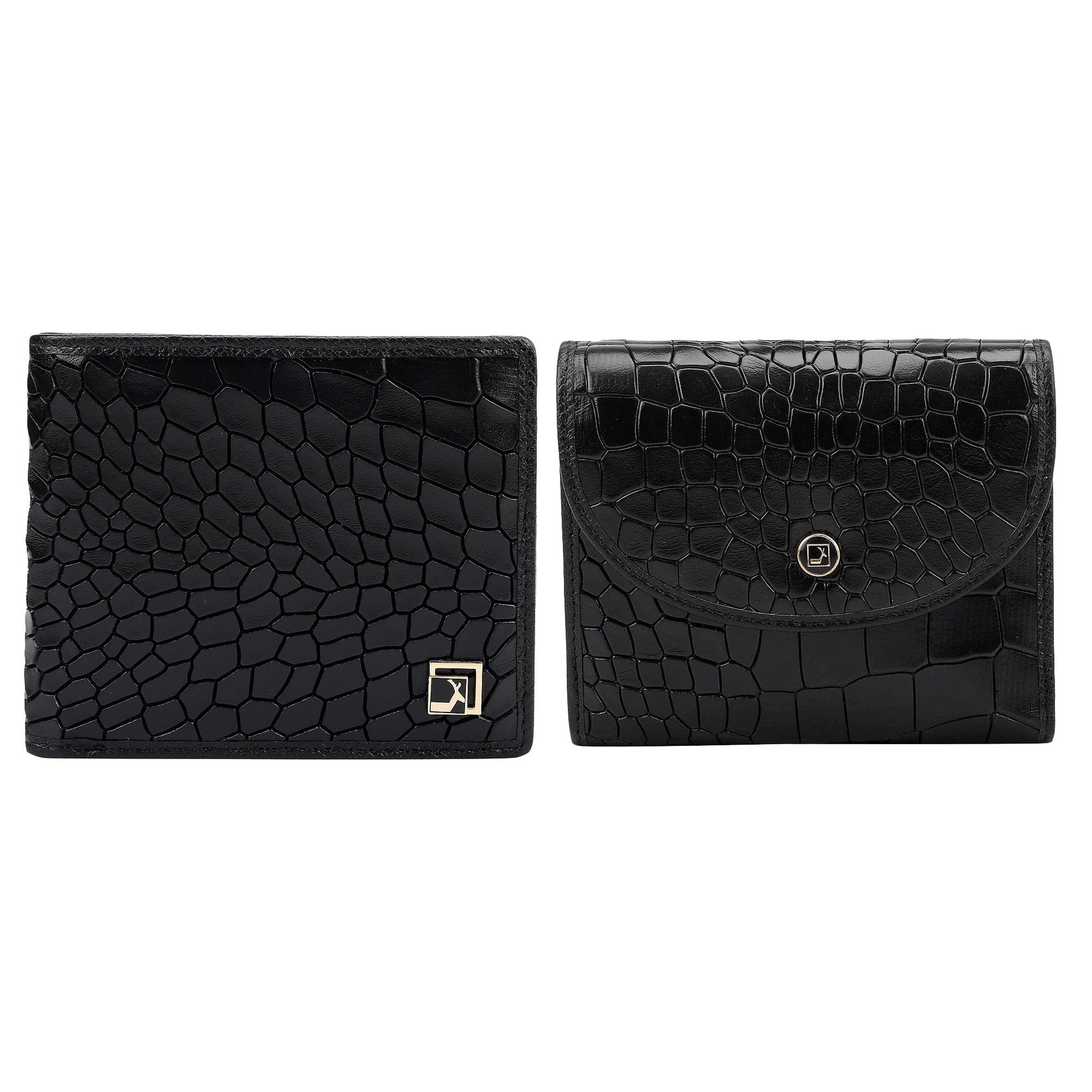 Black Croco Leather Mens & Ladies Wallet Gift Set