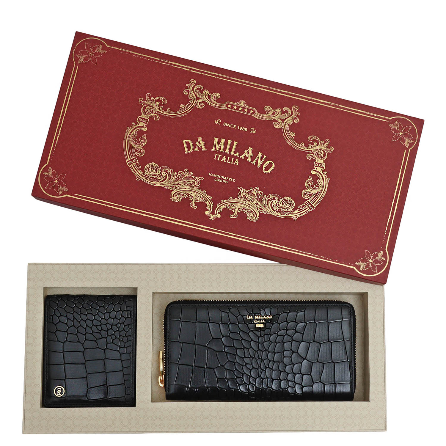 Black Croco Leather Mens & Ladies Wallet Gift Set