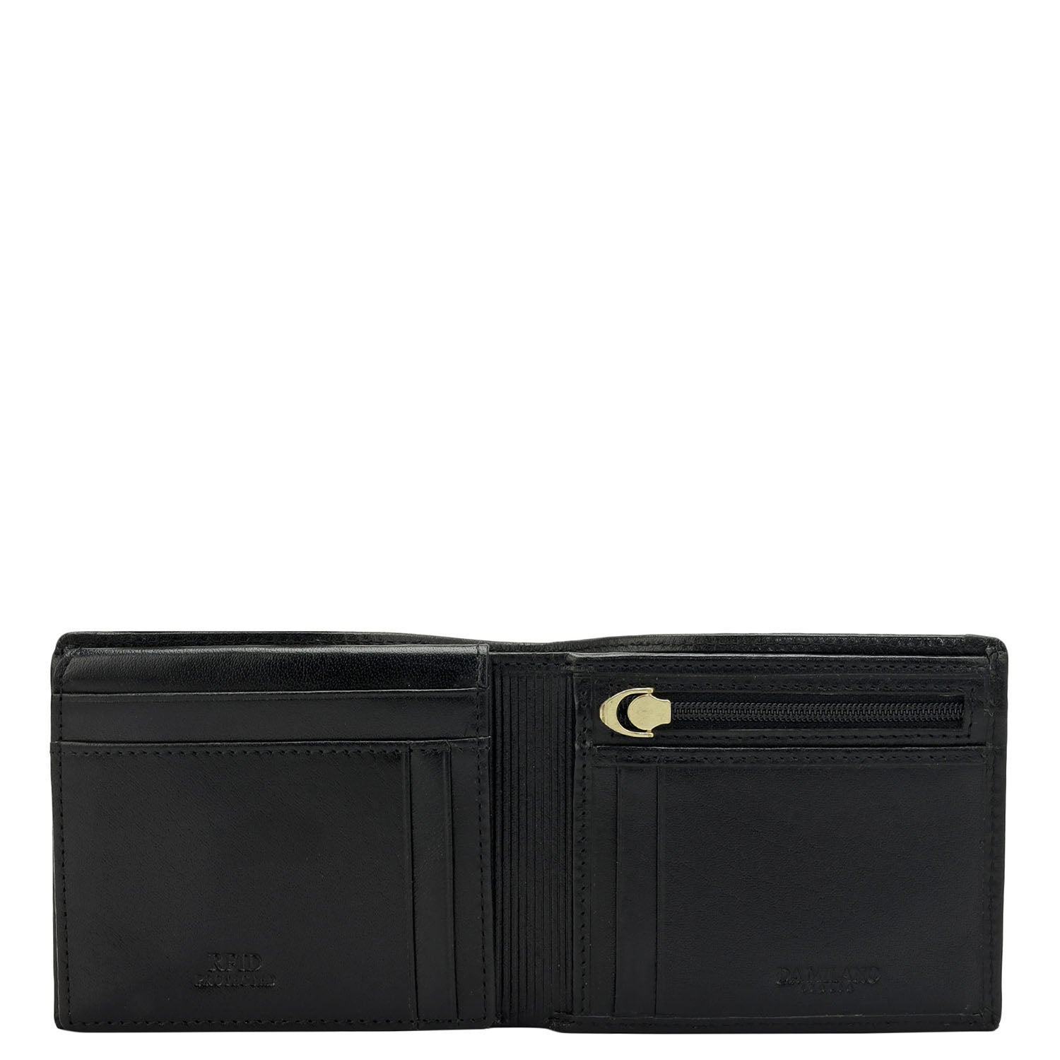 1N Mens Wallet: Cash Compartment- 2, Card Slot- 10, Slip Pocket- 2, Zip Pocket- 1, ID Window- 1