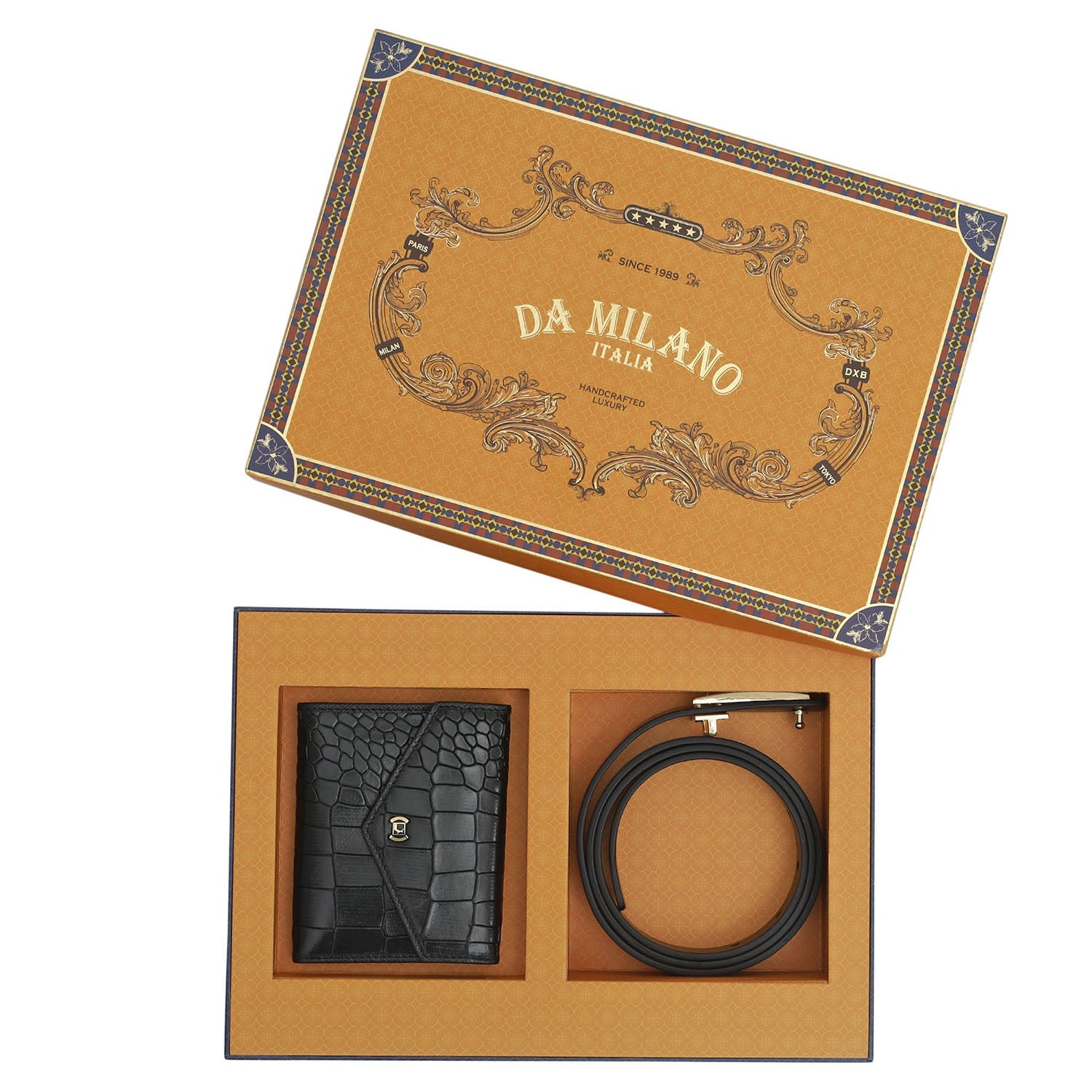 Black Plain Croco Ladies Wallet & Belt Gift Set