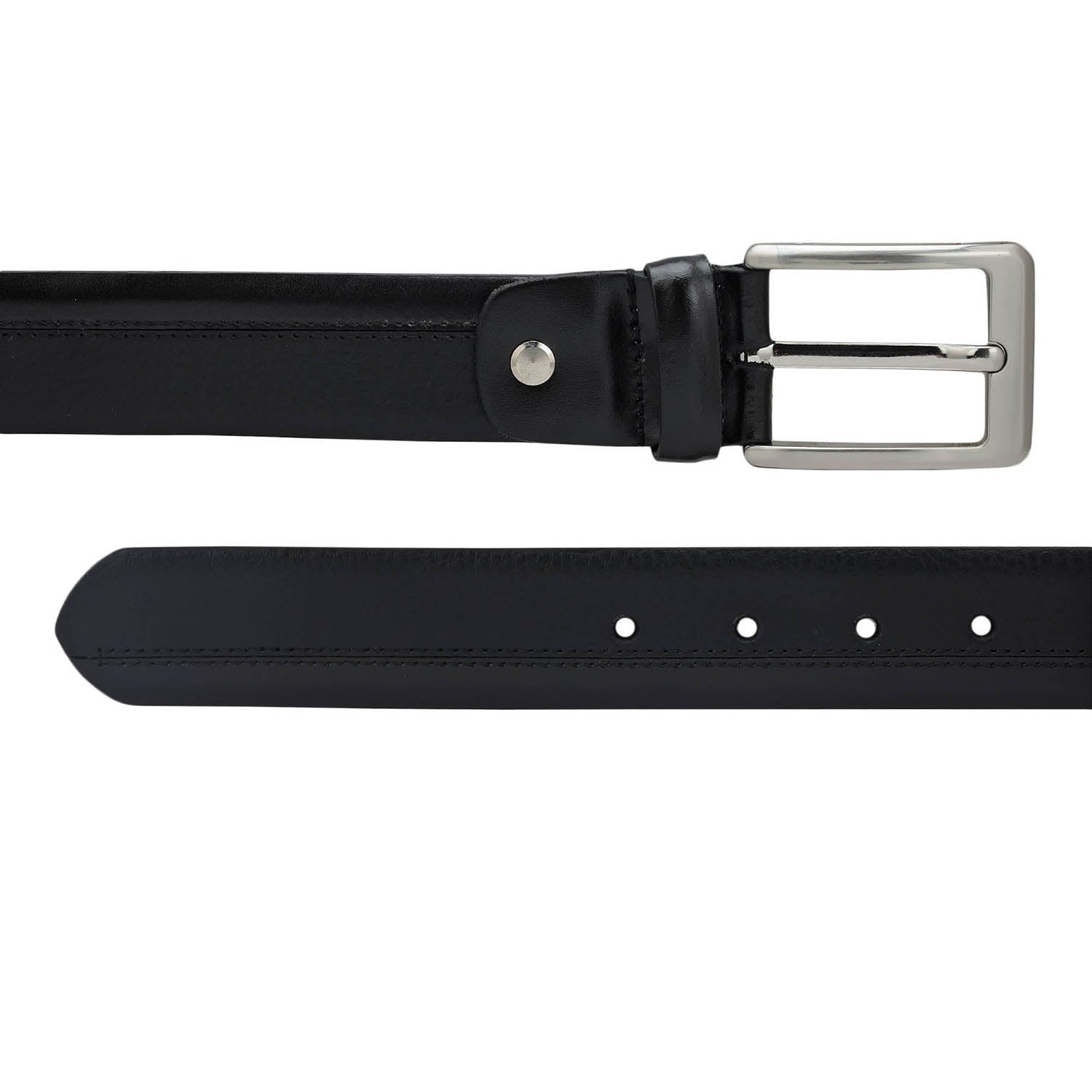 Black Plain Wax Leather Mens Wallet & Belt Gift Set