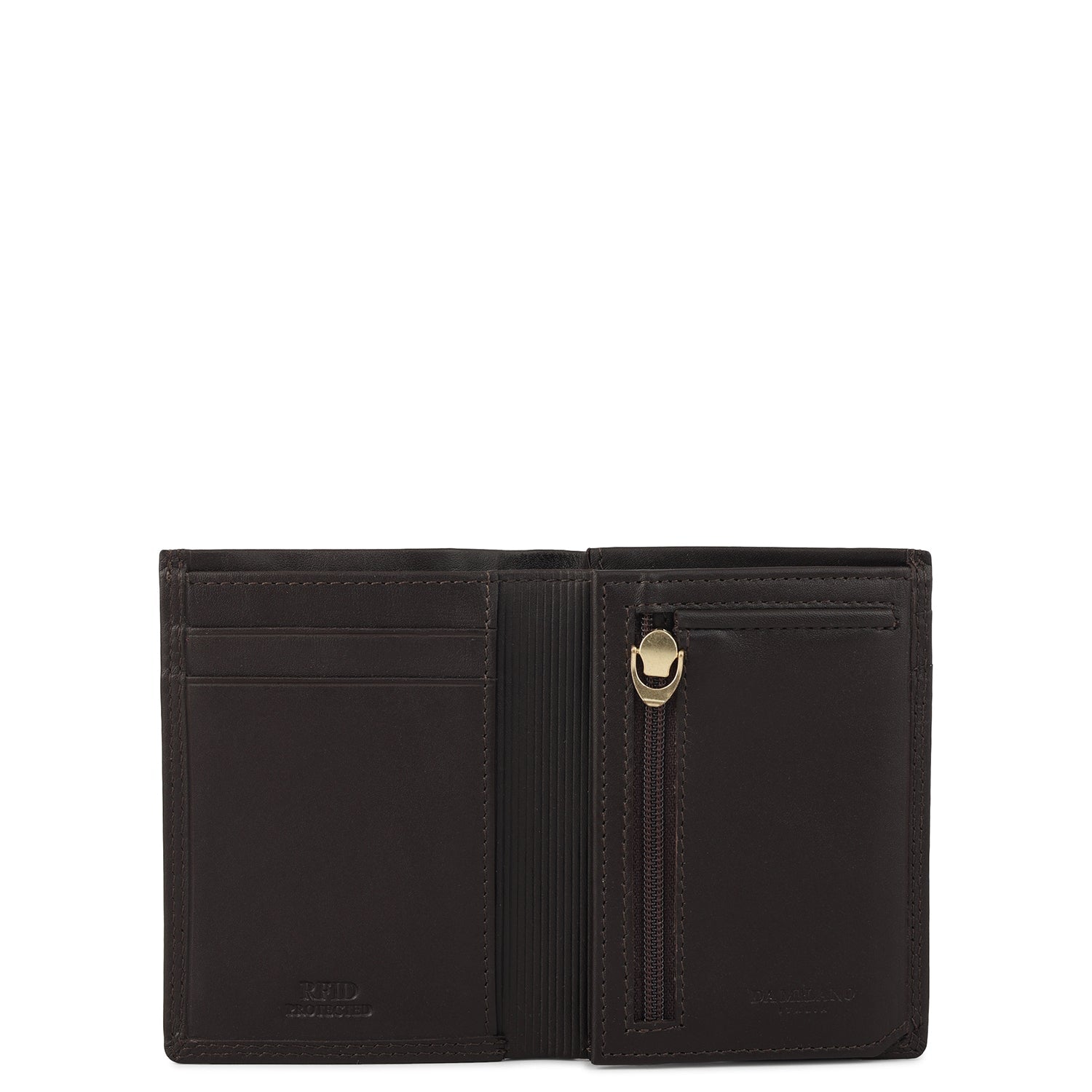 Crafted from textured leather, Da Milano men's bifold wallet offers a compact yet stylish design. Featuring easy-to-organize compartments, card slots, and pockets, it combines practicality with elegance. Subtle branding on the front enhances its refined appearance.