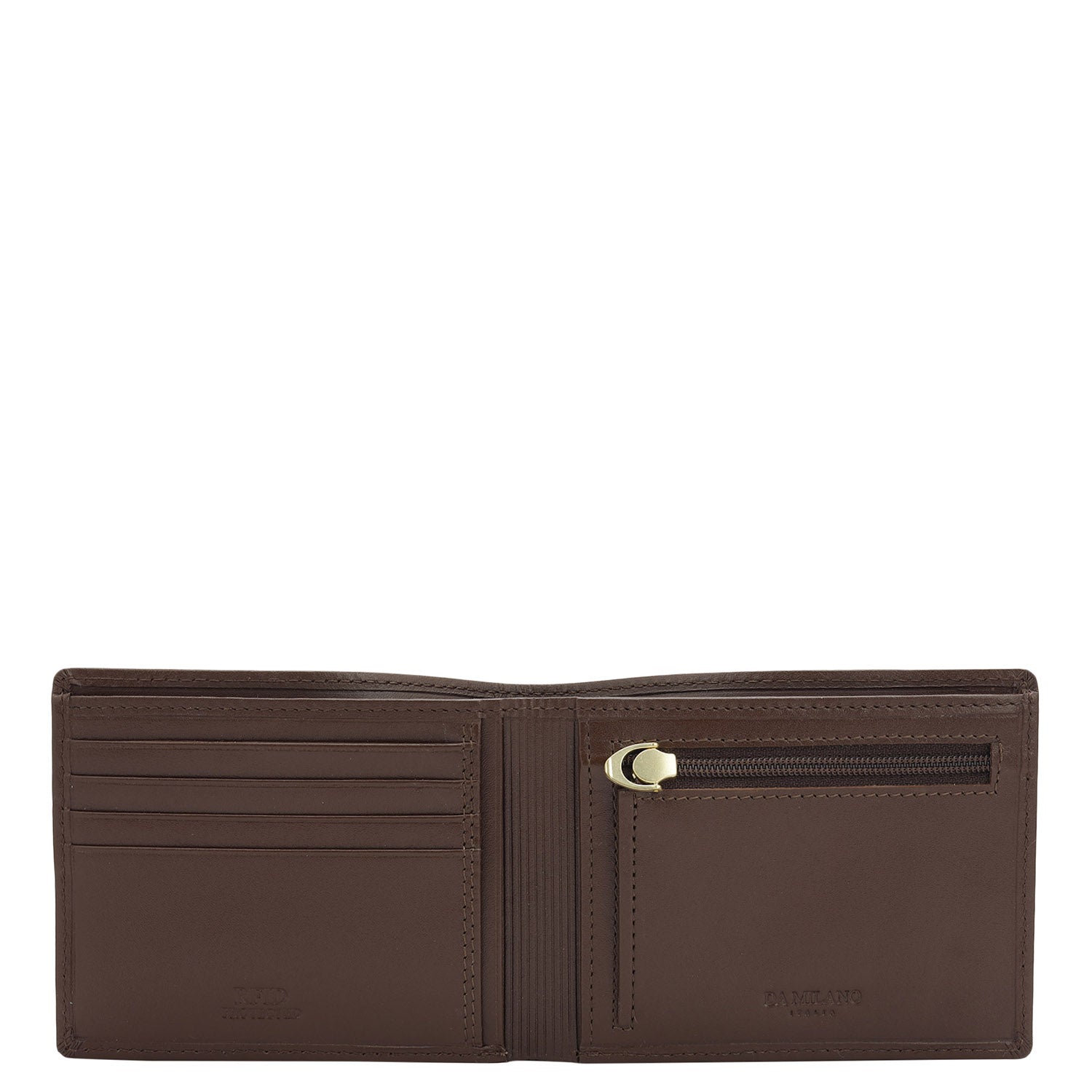 Crafted from textured leather, Da Milano men's bifold wallet offers a compact yet stylish design. Featuring easy-to-organize compartments, card slots, and pockets, it combines practicality with elegance. Subtle branding on the front enhances its refined appearance.