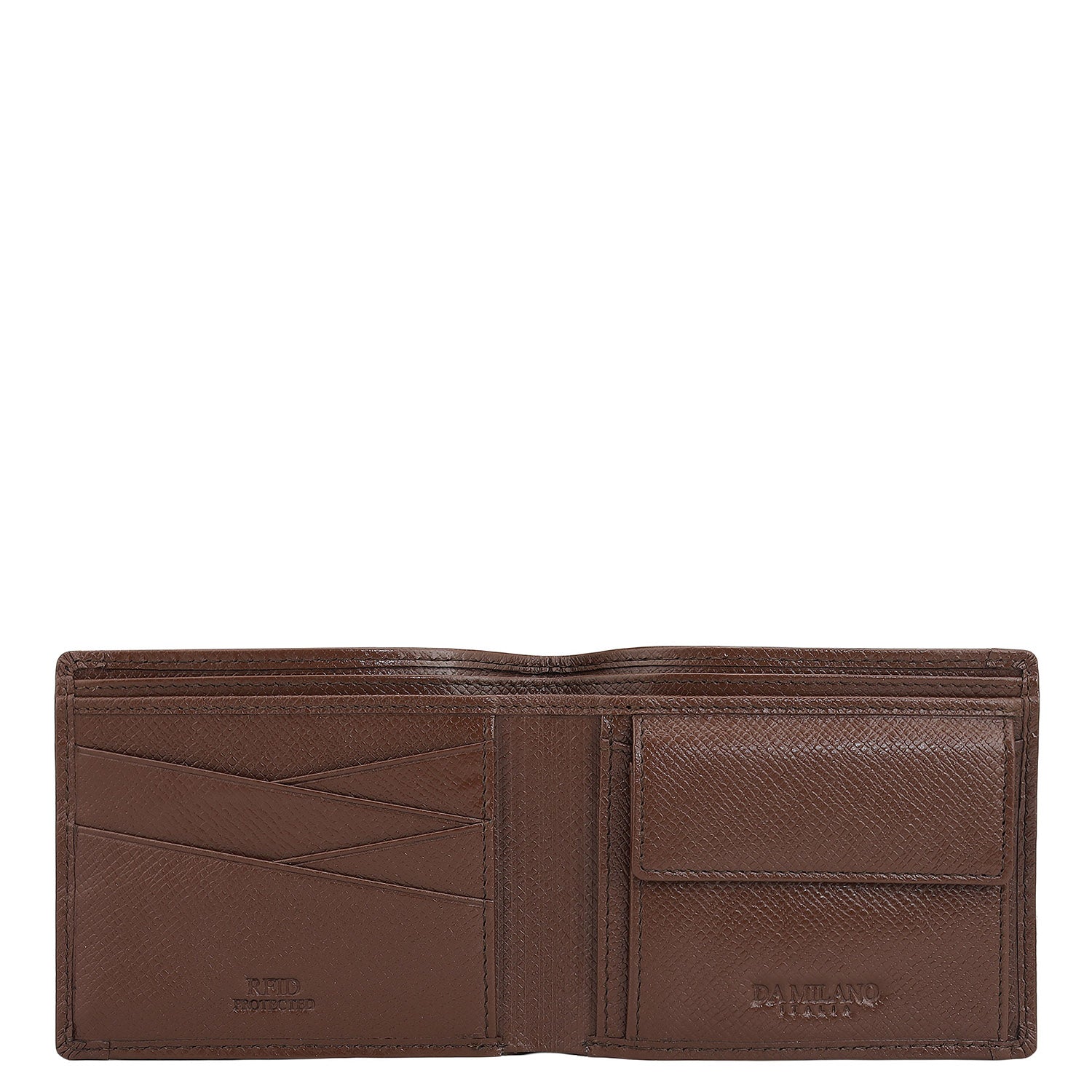 Crafted from textured leather, Da Milano men's bifold wallet offers a compact yet stylish design. Featuring easy-to-organize compartments, card slots, and pockets, it combines practicality with elegance. Subtle branding on the front enhances its refined appearance.