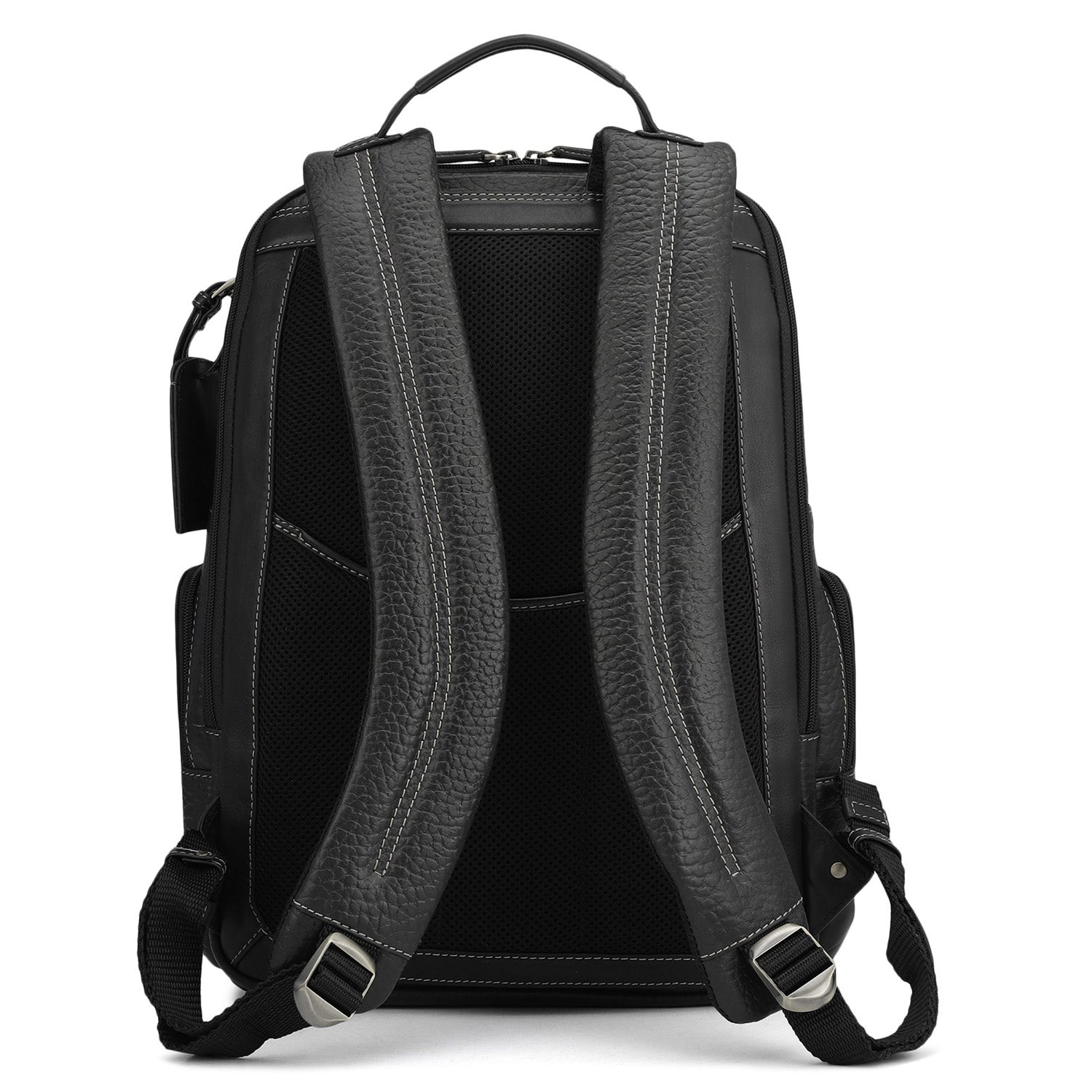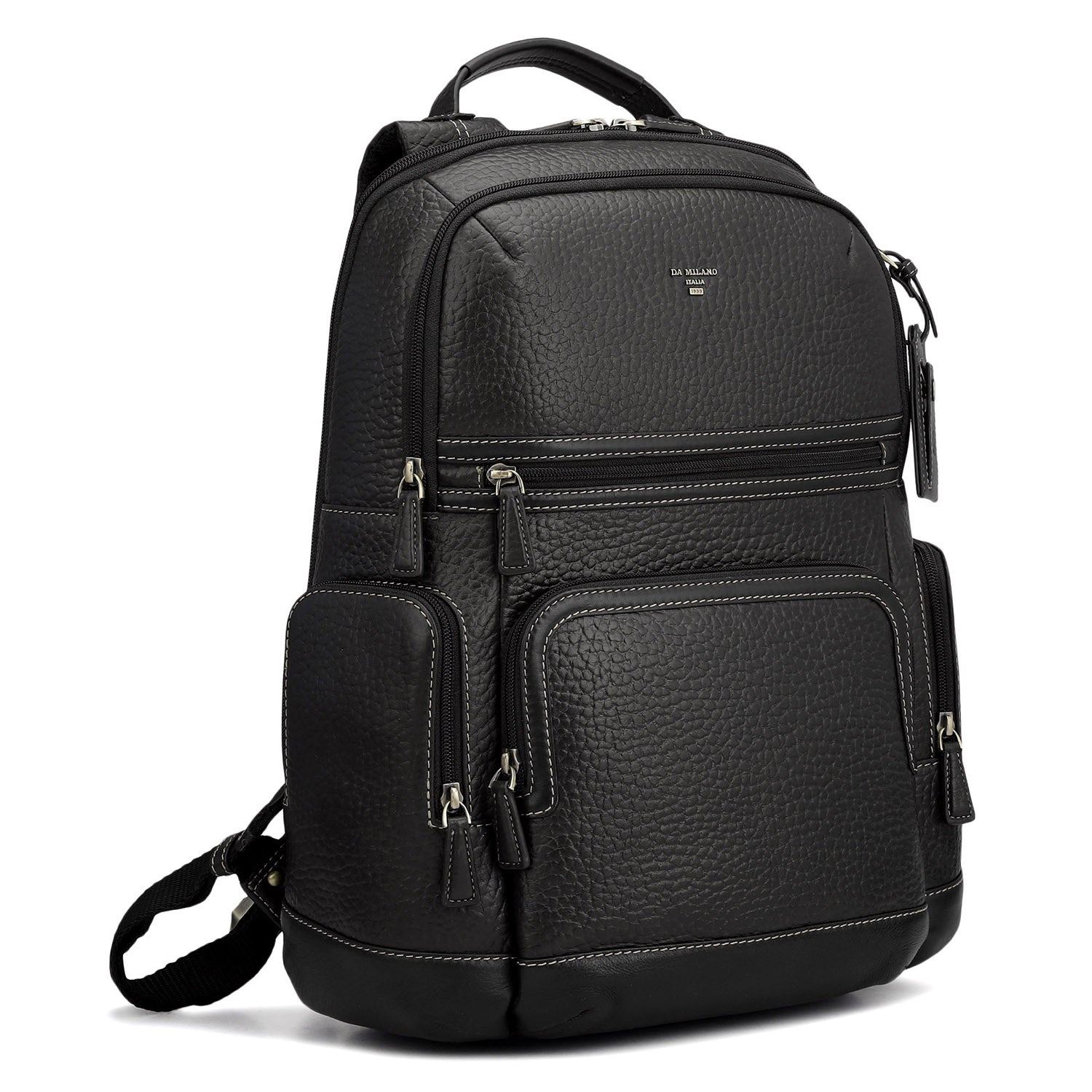 Leather backpack with a play of texture. Featuring multipurpose pockets on the exterior as well as interior to enhance utility. This functional bag is the perfect fusion of Italian craftsmanship and contemporary style. This bag can fit a standard laptop up to 15 inches.