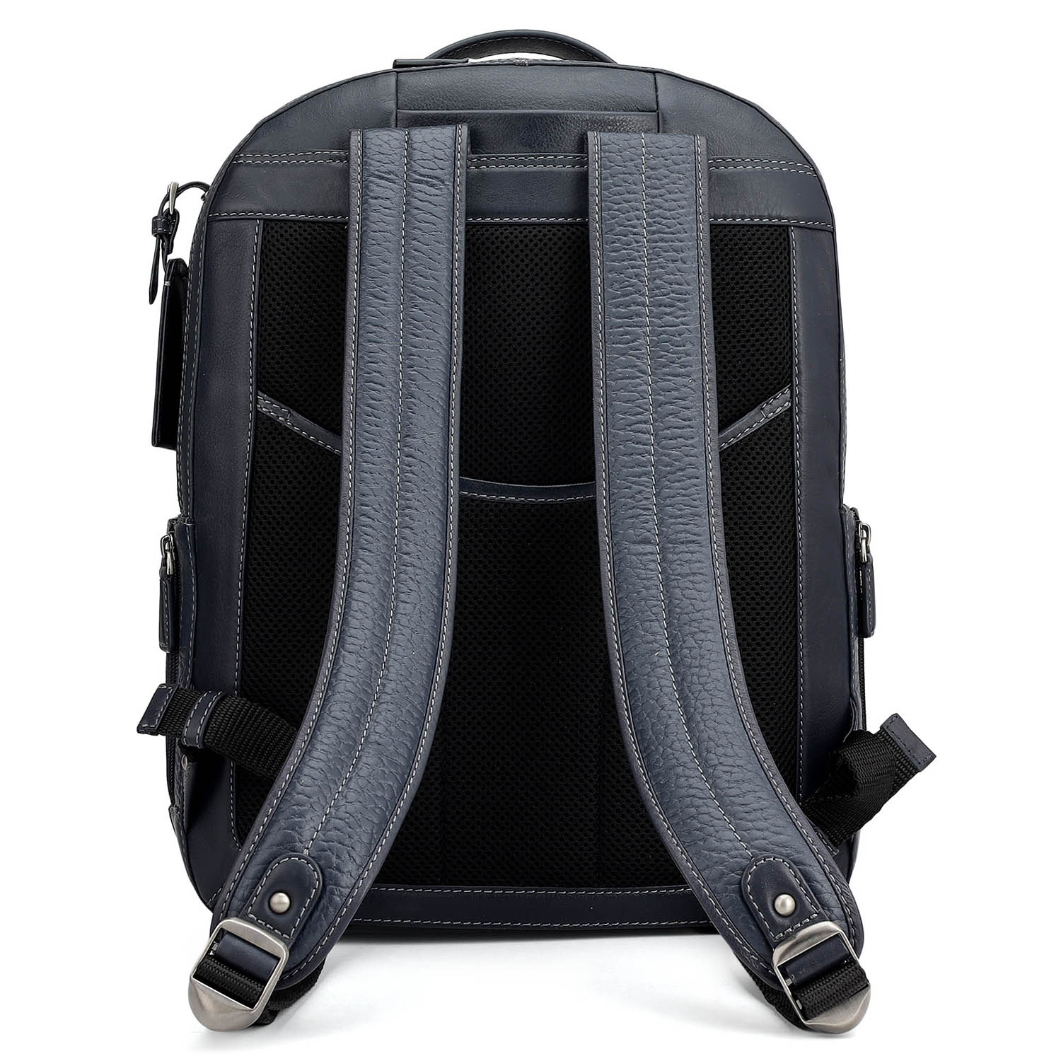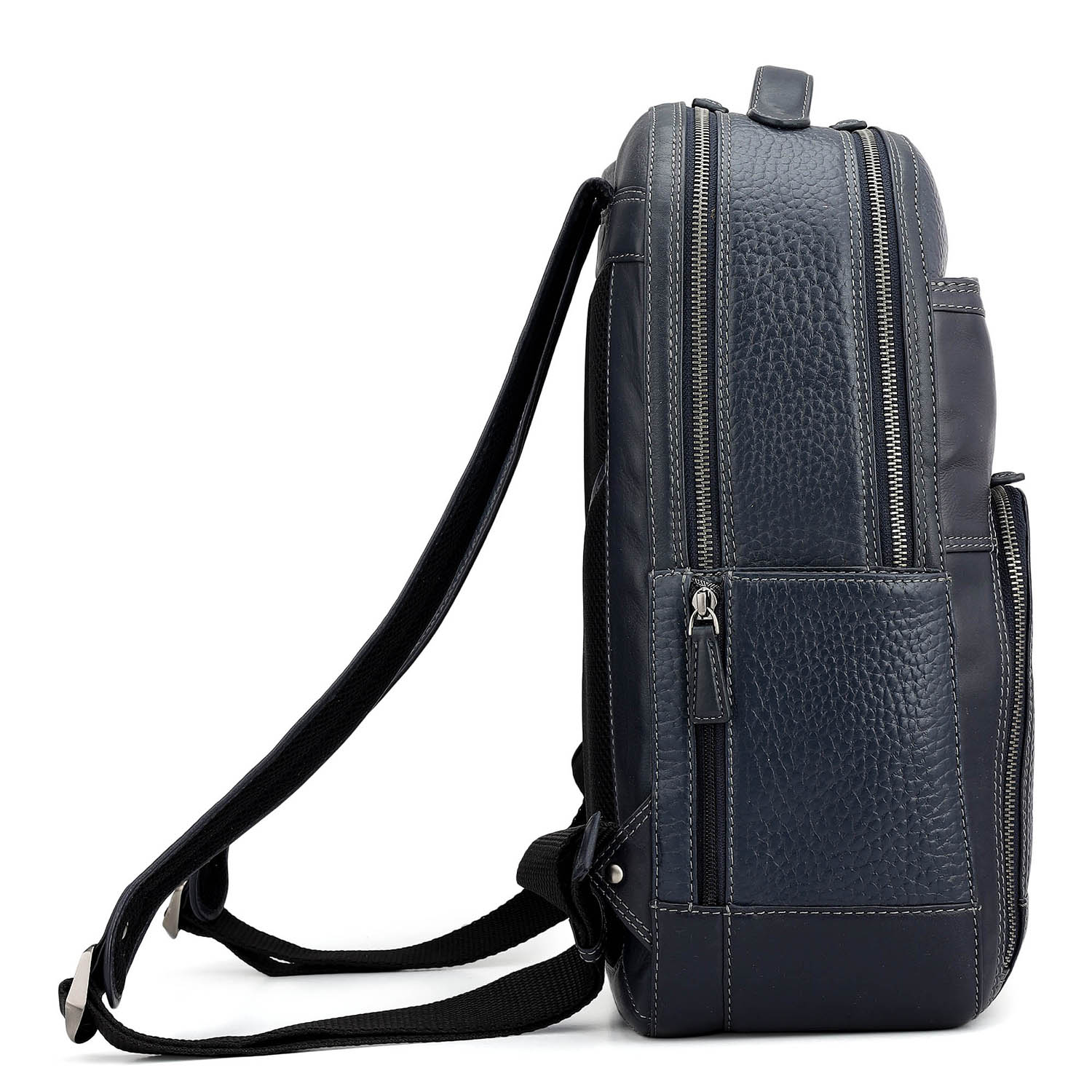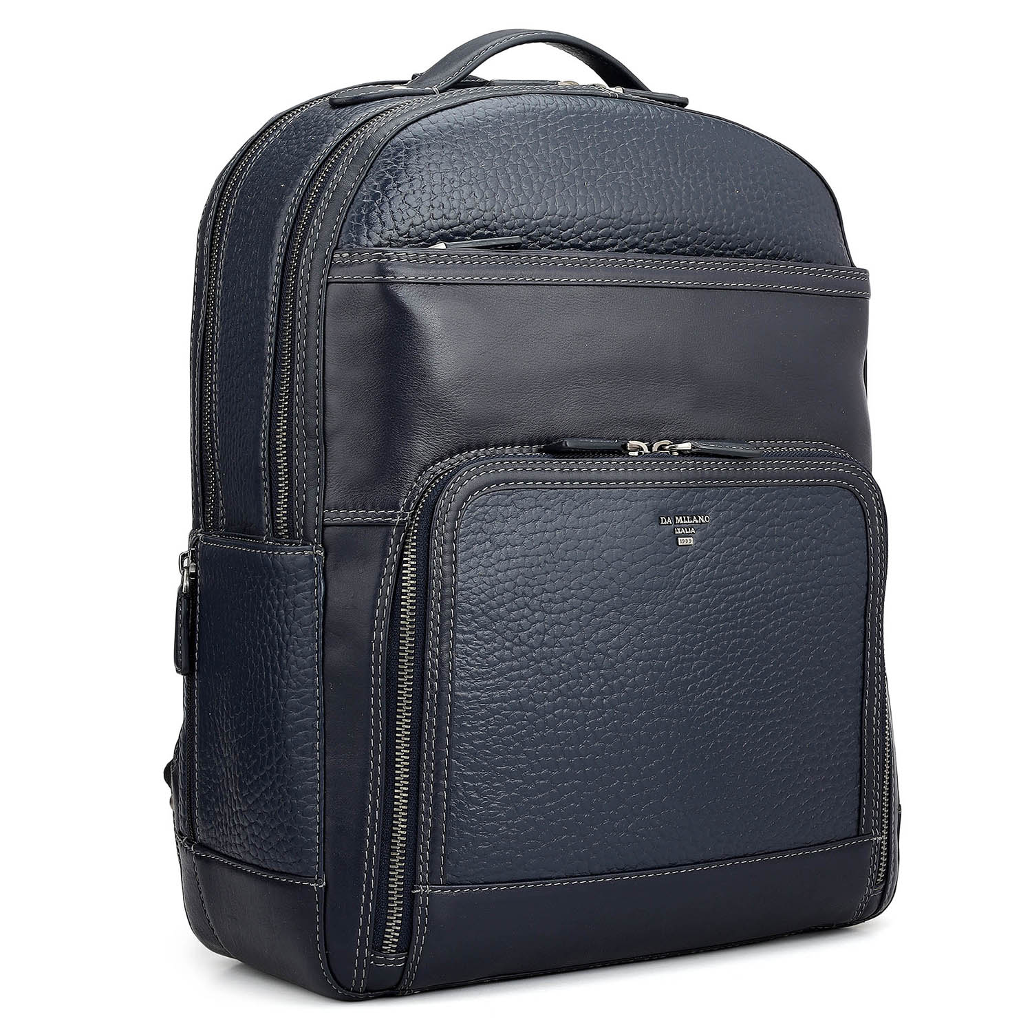 Leather backpack with a play of texture. Featuring multipurpose pockets on the exterior as well as interior to enhance utility. This functional bag is the perfect fusion of Italian craftsmanship and contemporary style. This bag can fit a standard laptop up to 15 inches.